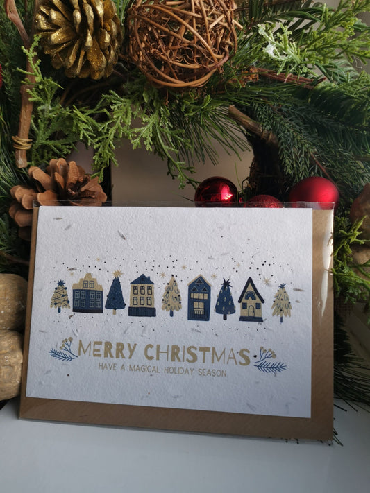 Plantable Christmas Card set of 4, 8 or 12, Biodegradable wildflowers seed paper, Eco Friendly, Bee friendly flowers, Festive greeting card