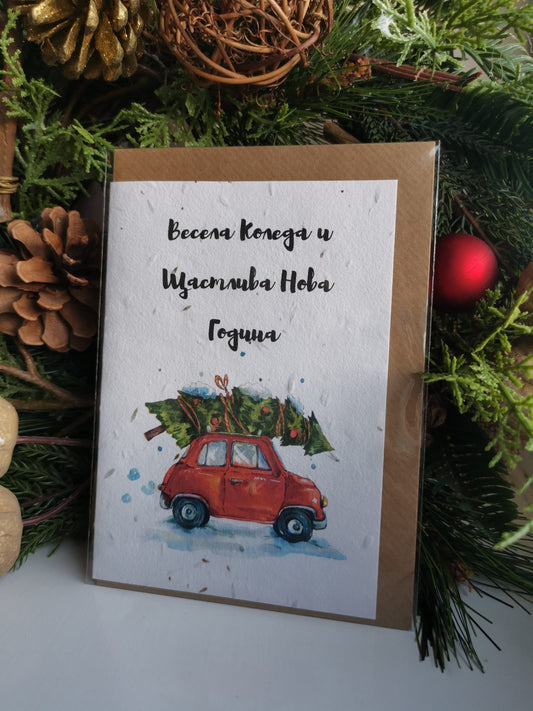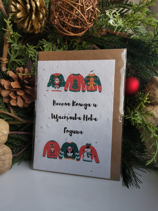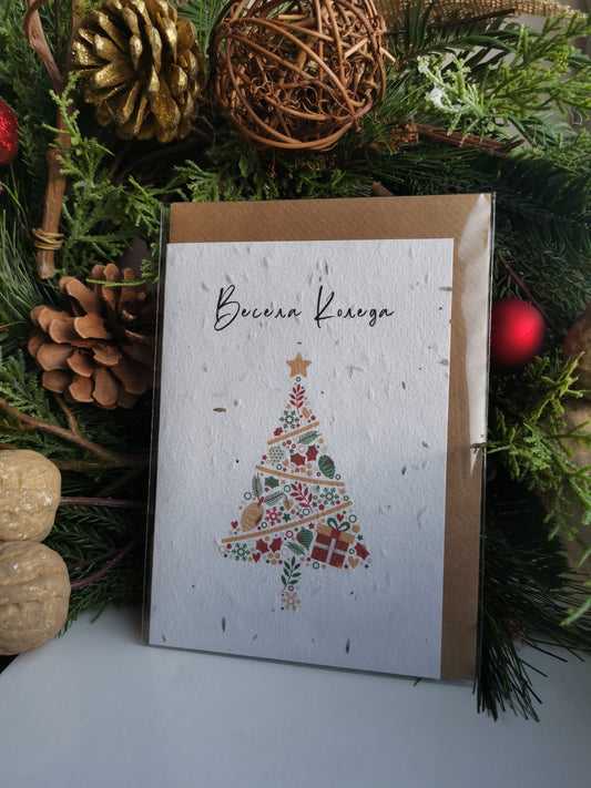 Bulgarian Christmas card, Plantable Seed Card, Biodegradable seed paper, Bee friendly gift, eco Christmas card, Festive greeting card