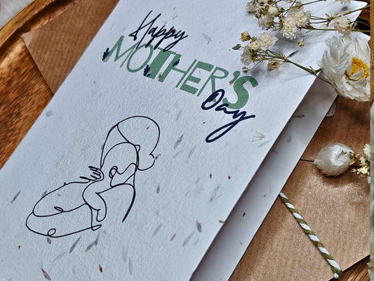 Plantable Happy Mother's Day card, Nature’s Wishes eco-friendly cards, Wildflower seed paper, Mom and Baby line drawing, Card to grow,