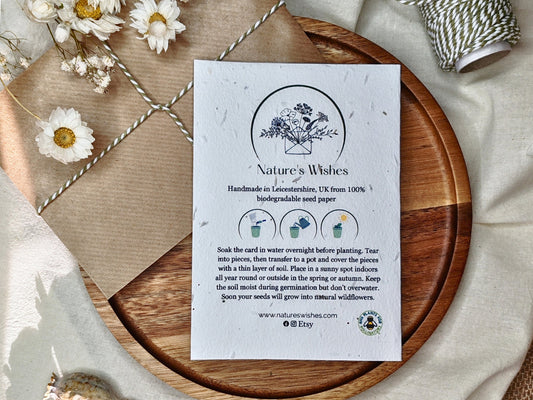 Plantable Seed Birthday Card, Personalised greeting card, Biodegradable seed paper, Wildflower, Plantable Eco-Friendly Gift, Bee friendly