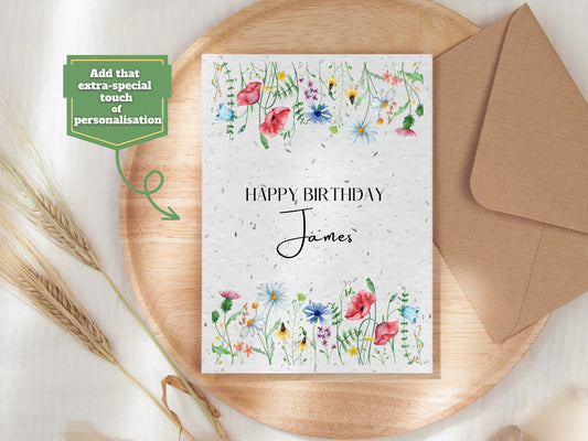 Plantable Seed Birthday Card, Personalised greeting card, Biodegradable seed paper, Wildflower, Plantable Eco-Friendly Gift, Bee friendly