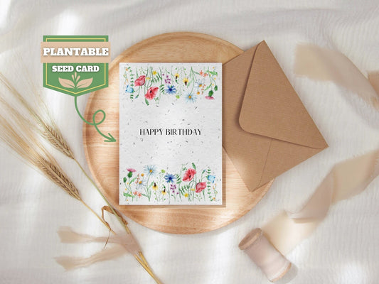 Plantable Seed Birthday Card, Happy Birthday card, Biodegradable seed paper, Wildflower, Plantable Eco-Friendly Gift, Bee friendly